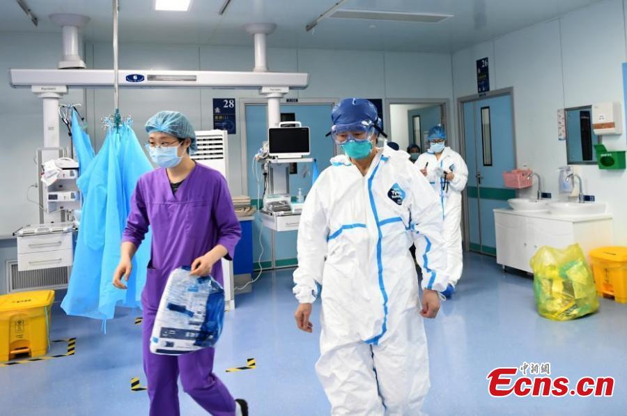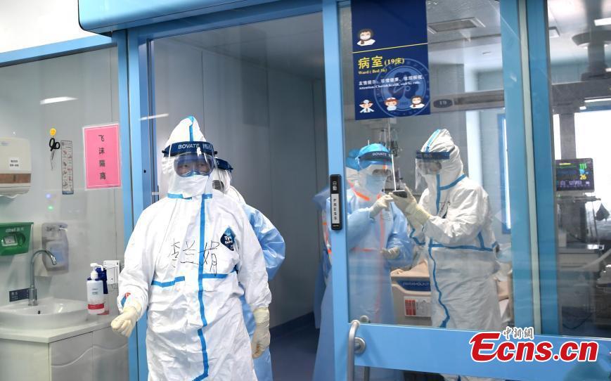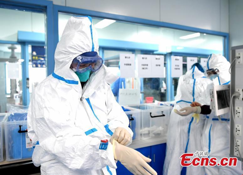 Epidemiologist Li Lanjuan(R) prepares to enter an intensive care unit ward of the Renmin Hospital of Wuhan University in Wuhan, Central China’ s Hubei province, Feb. 20, 2020.(Photo: China News Service/An Yuan)