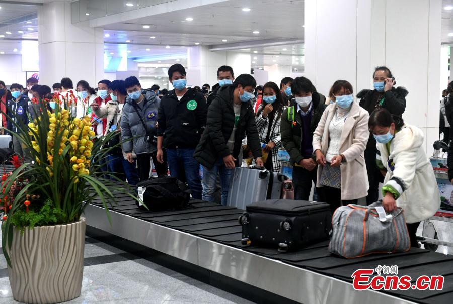 Passengers wait for their luggages at the Fuzhou Changle International Airport in Fuzhou, South China’s Fujian province,Feb. 20, 2020. (Photo: China News Service/Lv Ming)