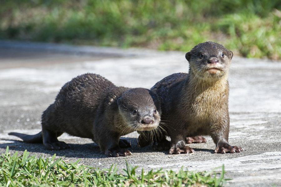 Young wild smooth-coated otter pups roam on the banks of the Singapore River on Feb 17, 2020. (Photo by Then Chih Wey/Xinhua)
