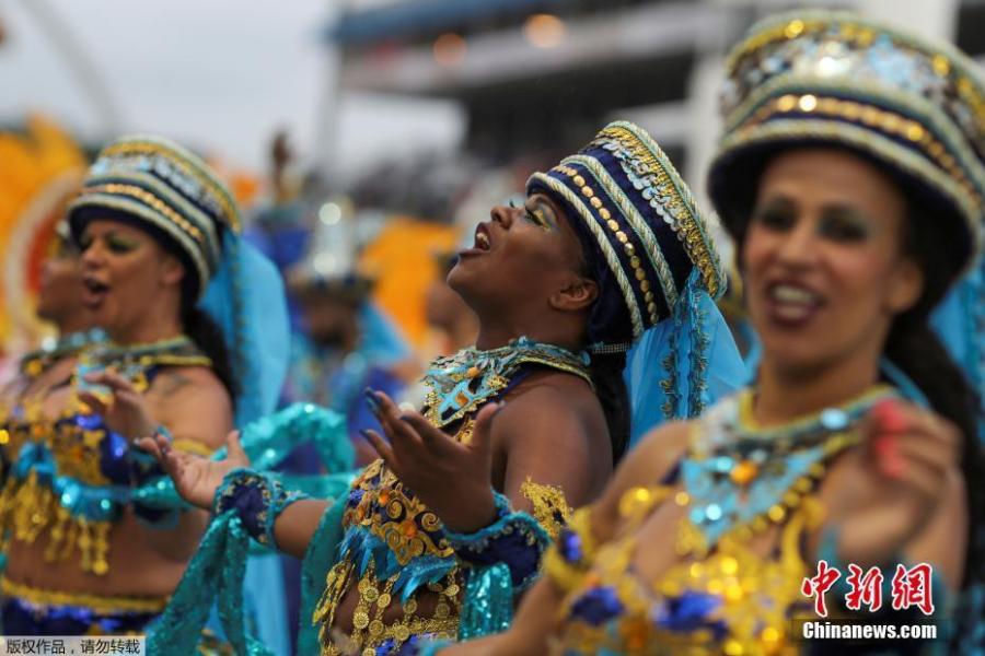 Revellers from Barroca Zona Sul samba school perform during the first night of the Carnival parade at the Sambadrome in Sao Paulo, Brazil, Feb. 22, 2020 (Photo/Agencies)