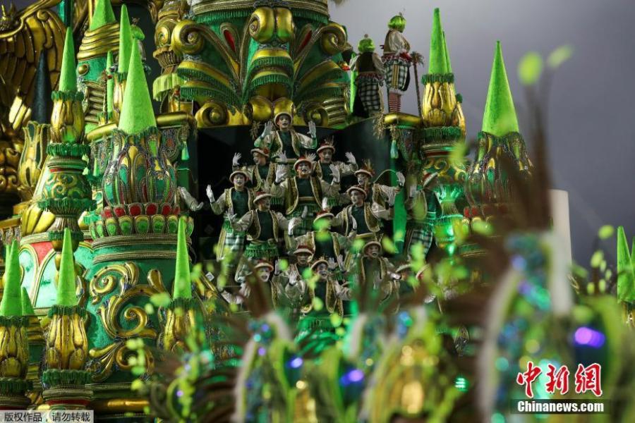 Revellers from Imperio de Casa Verde samba school perform during the first night of the Carnival parade at the Sambadrome in Sao Paulo, Brazil, Feb. 22, 2020. (Photo/Agencies)