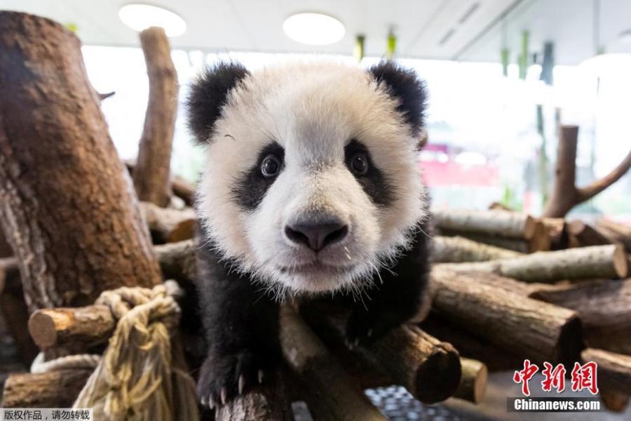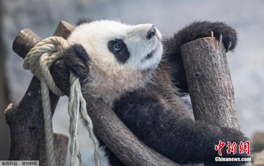 A handout photo shows Meng Yuan, one of the two twin panda cubs in Berlin Zoo, Germany, February 22, 2020. (Photo/Agencies)