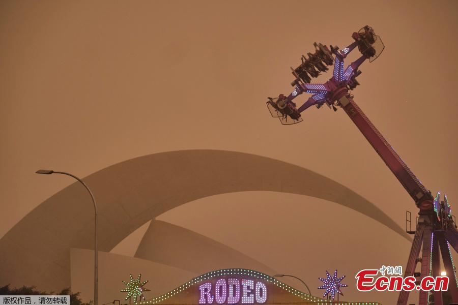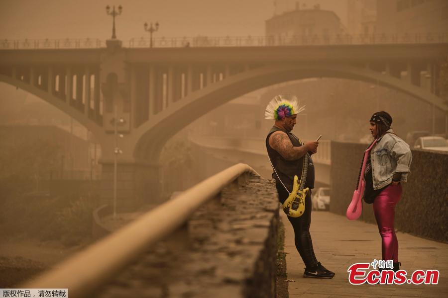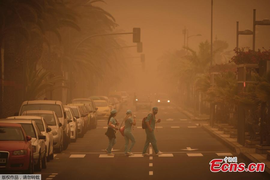 A vast sandstorm from the Sahara has shrouded Spain's Canary Islands, disrupting travel plans for tourists flying in and out. Spain's airport operator Aena cancelled, suspended or diverted all flights to and from the islands on Sunday, citing low visibility.(Photo/Agencies)