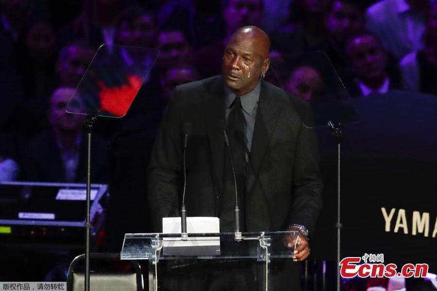 Former NBA player Michael Jordan cries while speaking during a celebration of life for Kobe Bryant and his daughter Gianna in Los Angeles on Monday, Feb. 24, 2020. (Photo/Agencies)
