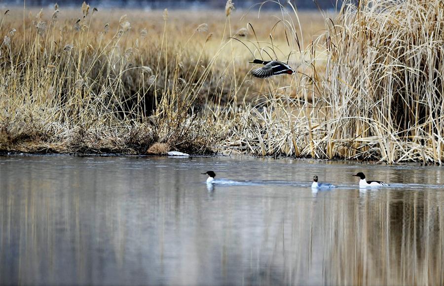 Birds are seen at Lhalu wetland in Lhasa, southwest China's Tibet Autonomous Region, Feb. 24, 2020. Lhalu Wetland National Nature Reserve, known as "the Lung of Lhasa", gets rejuvenated as temperature rises. (Xinhua/Zhang Rufeng)
