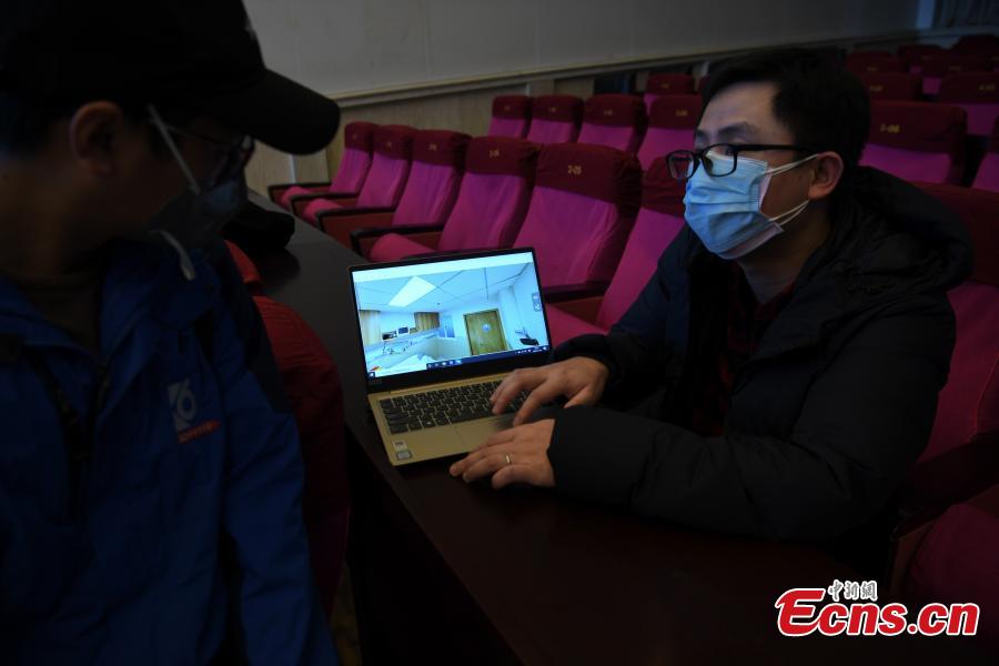 Image of an isolation ward is seen on a laptop when a worker demonstrates how the 5G technology and virtual reality technology can play a role in medical treatment, Feb.24, 2020.(Photo: China News Service/ Kang Ping)