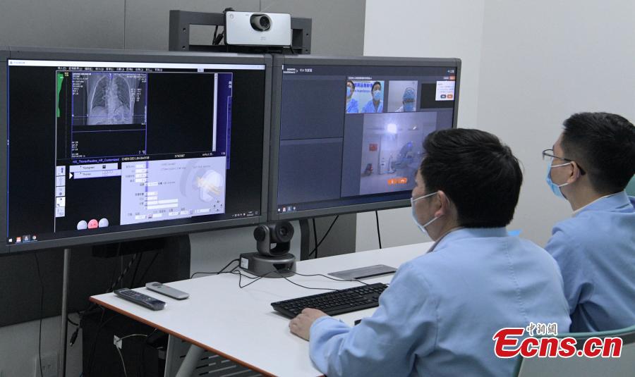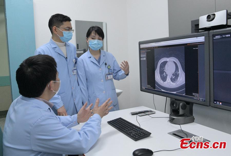 The application of 5G in the medical field has become a reality. Doctors at West China Hospital of Sichuan University-one of the most prestigious medical centers in the country-has started using 5G technology to diagnose COVID-19 patients in Sichuan Province. Li Zhenlin, the Deputy Director of the Radiology Department at the hospital has remotely diagnosed 17 patients so far. The process for each patient takes just about five minutes. Through remote 5G transmissions, doctors are able to control the CT scanners in remote hospitals, from a far distance, on a real-time basis. (Photo: China News Service/Liu Zhonglie)
