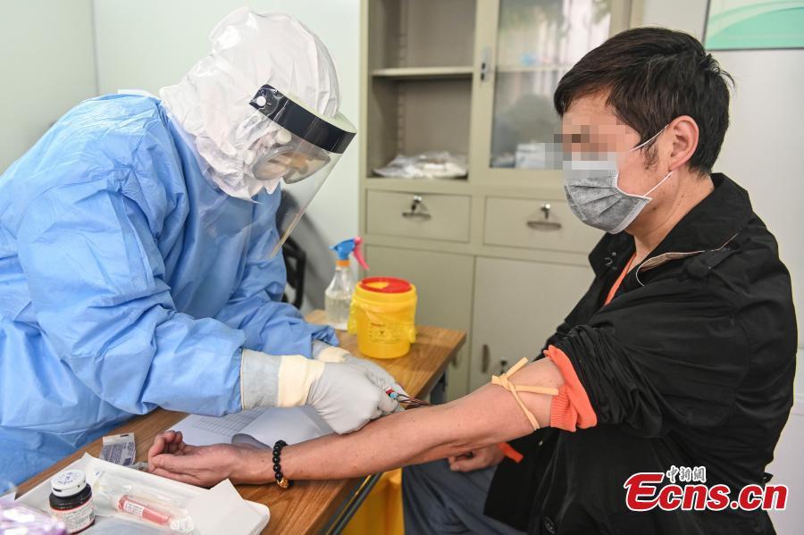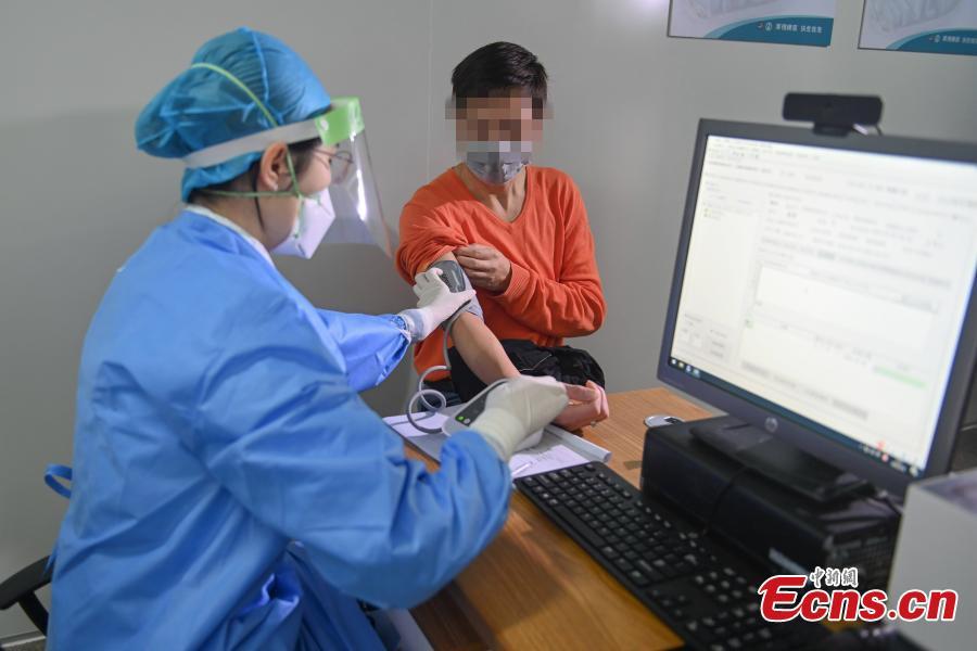 A cured coronavirus patient has his condition checked at an outpatient department of Guangdong Second Provincial General Hospital in Guangzhou, South China’s Guangdong province, Mar. 4, 2020. The hospital sets up the department especially for cured patients to better monitor their health condition and offer rehabilitation tips for those in need. (Photo: China News Service/Chen Jimin)