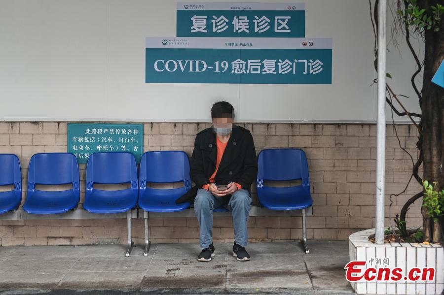 A cured coronavirus patient waits outside an outpatient department of Guangdong Second Provincial General Hospital in Guangzhou, South China’s Guangdong province, Mar. 4, 2020. The hospital sets up the department especially for cured patients to better monitor their health condition and offer rehabilitation tips for those in need. (Photo: China News Service/Chen Jimin)
