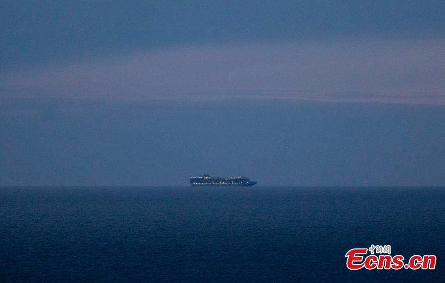 The Grand Princess cruise ship sits off the coast of San Francisco, Mar. 8, 2020. The Grand Princess cruise ship set to dock at the Port of Oakland in California on Monday. Some 19 crew members and two passengers have tested positive for the coronavirus, and all the passengers will now have to undergo quarantine. Twenty Chinese nationals including 11 crew members and nine passengers are on the ship. (Photo: China News Service/ Liu Guanguan)