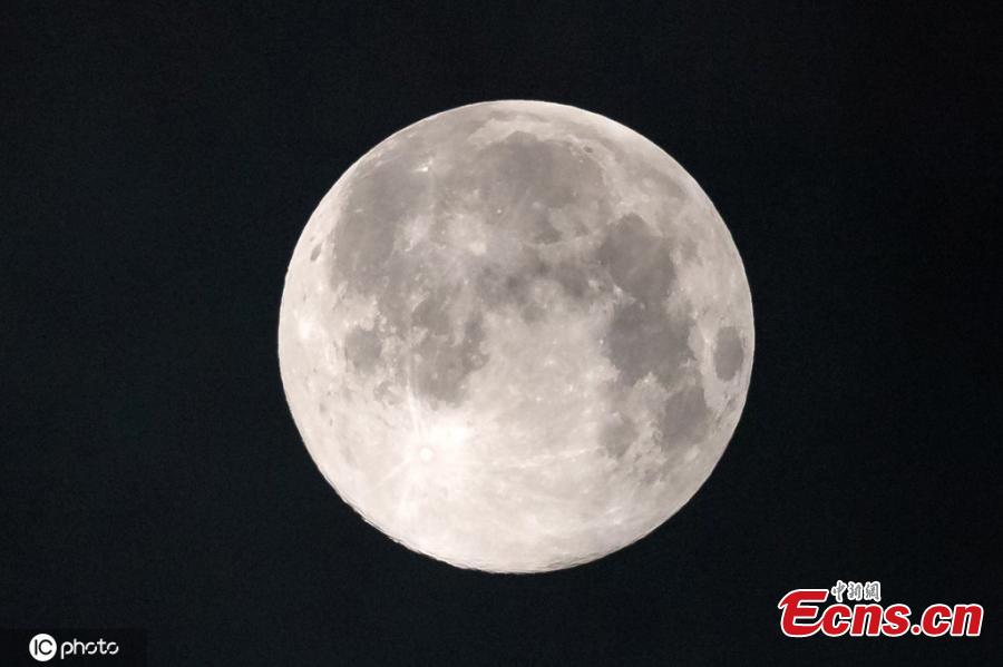 A full moon is seen on sky in Nanning, capital of South China's Guangxi Zhuang autonomous region, Mar. 10, 2020. (Photo: China News Service/Yu Jing)