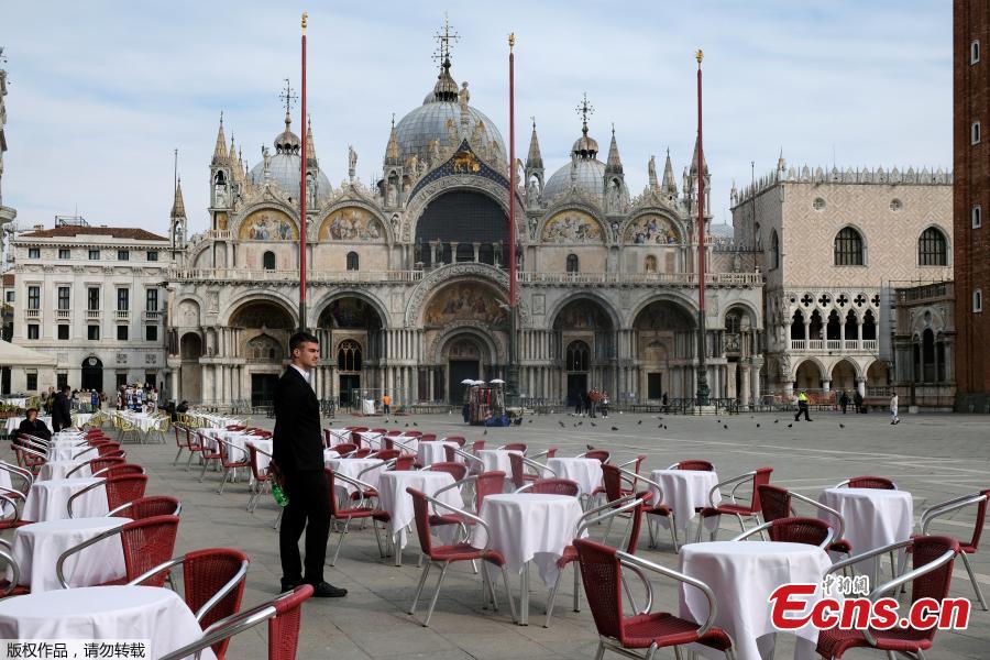 A waiter stands by empty tables outside a restaurant at St Mark's Square after the Italian government imposed a virtual lockdown on the north of Italy to try to contain a coronavirus outbreak, in Venice, Italy, March 9, 2020. (Photo/Agencies)