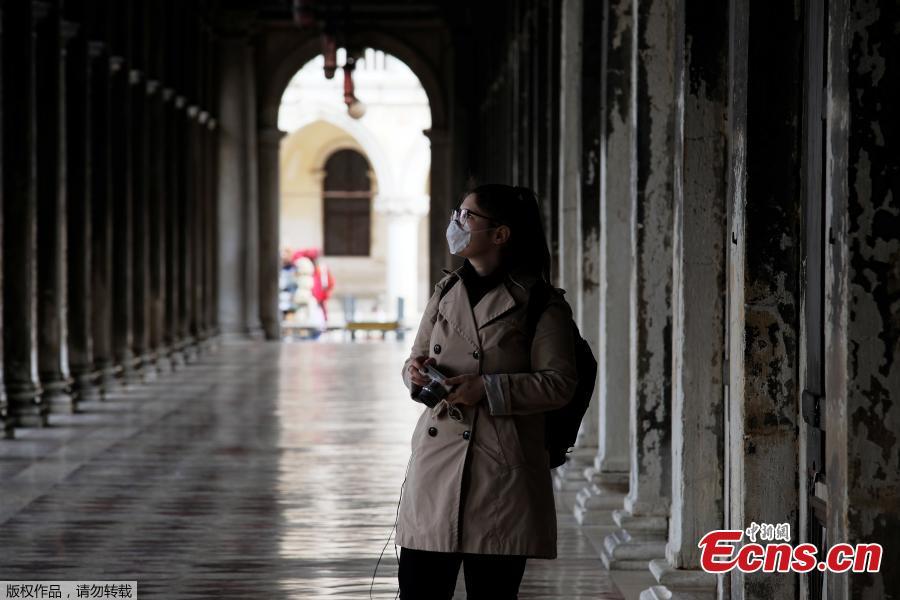 A woman wearing a protective mask walks through St. Mark's Square after the Italian government imposed a virtual lockdown on the north of Italy to try to contain a coronavirus outbreak, in Venice, Italy, March 9, 2020. (Photo/Agencies)