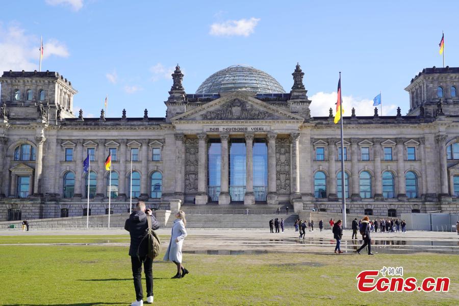 Visitors walk past the Reichstag building in Berlin, Germany, Mar. 11, 2020. Berlin has taken another measure designed to slow down the spread of the Coronavirus. State-owned cultural venues are closed in the city. The measure kicked in on Mar. 10. (Photo: China News Service/Peng Dawei)