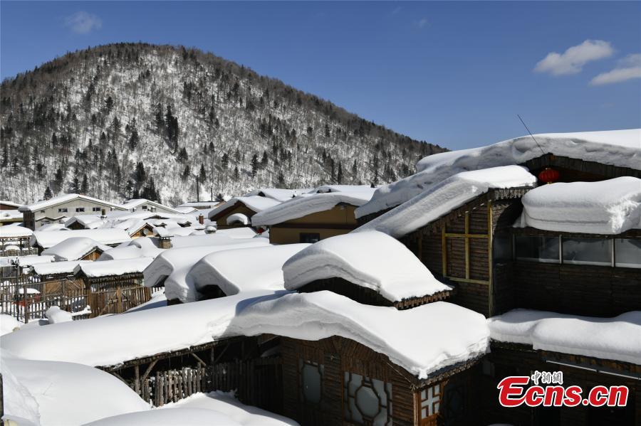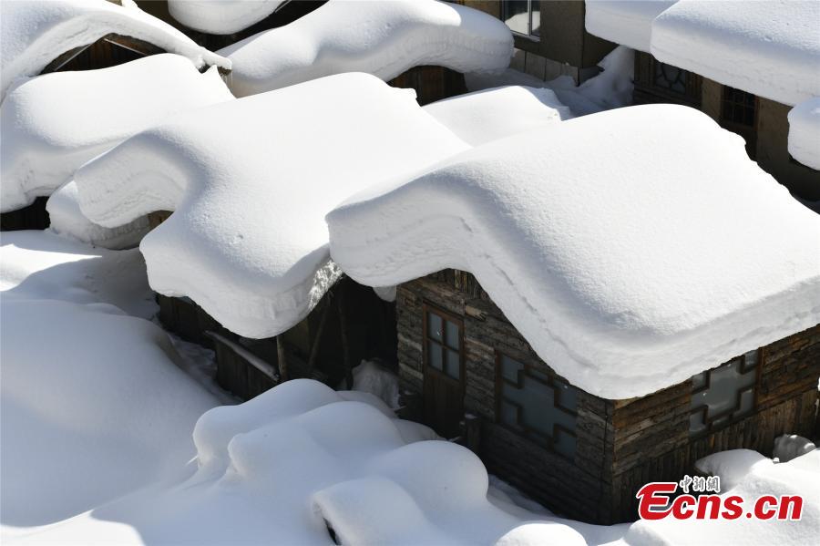 Snow-covered houses are seen in Xuexiang, a renowned ice and snow tourist resort, in Northeast China's Heilongjiang province. Xuexiang frequently experiences heavy snowfall and is covered in snow for up to seven months at a time due to the influence of the Siberian cold front and warm current from the Sea of Japan. Xuexiang has now become the province's name card for its ice and snow tourism. (Photo: China News Service/ Wang Lin/ Wang Yanlong)