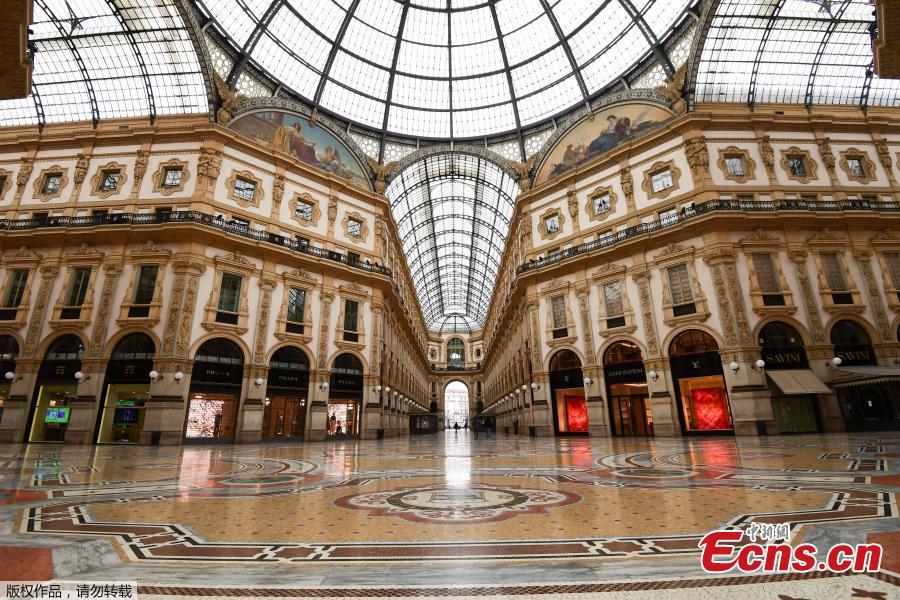 A general view shows the inside of a deserted Galleria Vittorio Emanuele II shopping mall in center Milan on March 12, 2020, as Italy shut all stores except for pharmacies and food shops in a bid to halt the spread of a coronavirus. (Photo/Agencies)