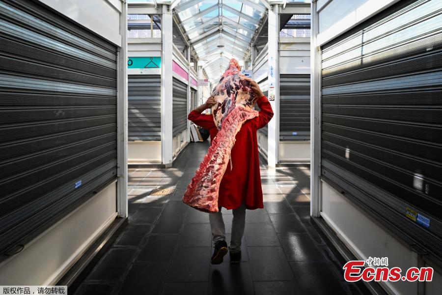 A delivery man transports meat past closed stalls to the butcher's shop at a market in Rome on March 12, 2020, as Italy shut all stores except for pharmacies and food shops in a bid to halt the spread of a coronavirus that has killed 827 in the the country in just over two weeks. (Photo/Agencies)