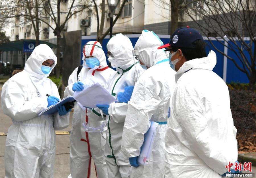 Medical workers check information of cured patients at a rehabilitation center in Wuhan, central China's Hubei Province, March 12, 2020. (Photo: China News Service/An Yuan)