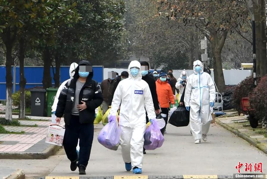 Cured coronavirus patients walk out of a rehabilitation center after a 14-day quarantine for medical observation in Wuhan, central China's Hubei Province, March 12, 2020. A total of 51 cured coronavirus patients who were discharged from hospital finished their 14-day quarantine for medical observation on Tuesday at the rehabilitation center based in Changjiang Institute of Technology. (Photo: China News Service/An Yuan)