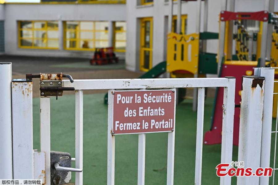 A picture taken on March 12, 2020 shows a closed school with a sign reading "For the security of children, please close the gate" in Bruz, western France.(Photo/Agencies)