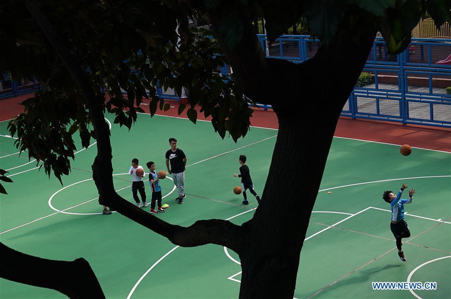 Locals play basketball in Hong Kong, south China, Feb. 23, 2020. Local authorities have undertaken a series of measures to protect their people from the threats of coronavirus. (Xinhua/Li Gang)