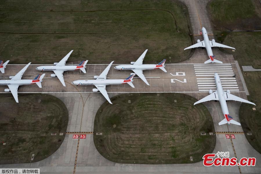 American Airlines passenger planes crowd a runway where they are parked due to flight reductions to slow the spread of coronavirus disease, at Tulsa International Airport in Tulsa, Oklahoma, U.S. March 23, 2020. (Photo/Agencies)