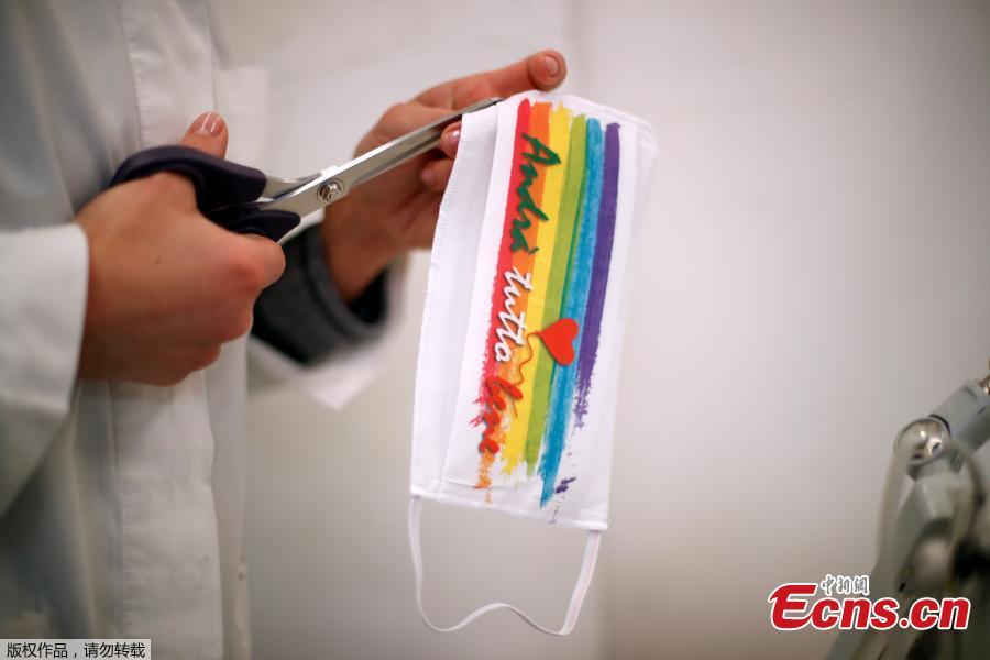 An employee works on a protective face mask with the phrase "andra tutto bene" that means "everything will be ok", sewn onto it-a phrase that has a symbol of hope as Italy battles a spread of coronavirus disease, in a clothing factory of sisters Barbara, Lisa and Manuela De Virgilio, that usually makes women's fashion wear but now makes solely face masks, in Molfetta, southern Italy, March 25, 2020. (Photo/Agencies)