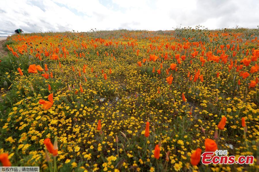 A person takes photos at the Antelope Valley California Poppy Reserve during the global outbreak of the coronavirus disease in Lancaster, California, U.S., March 25, 2020. (Photo/Agencies)