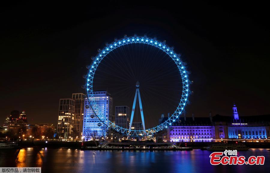 The London Eye is pictured lit blue in support of the National Health Service (NHS), as the spread of the coronavirus disease (COVID-19) continues, London, Britain, March 26, 2020. (Photo/Agencies)