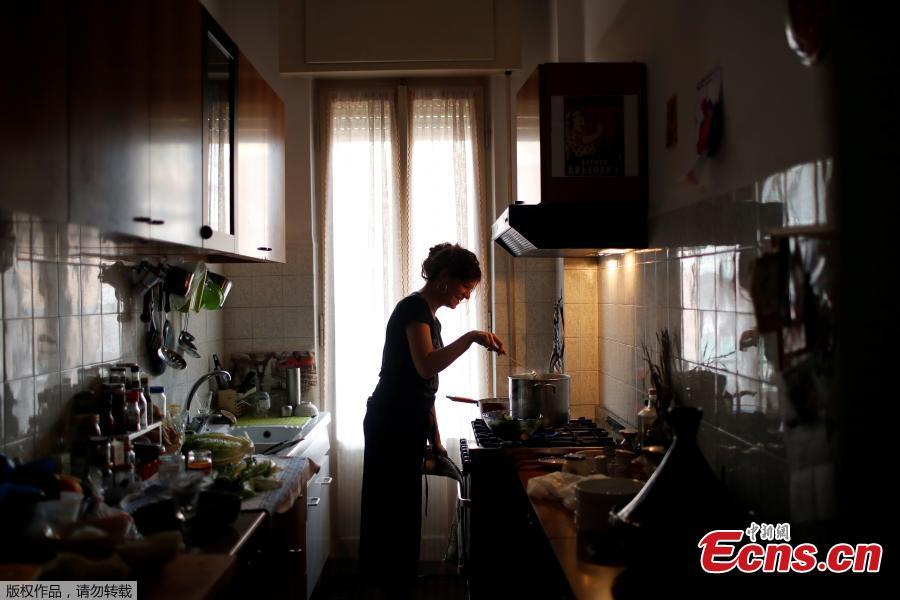 Italian chef Laura Carrera, 37, prepares meal at home in Rome, Italy, March 30, 2020.(Photo/Agencies)