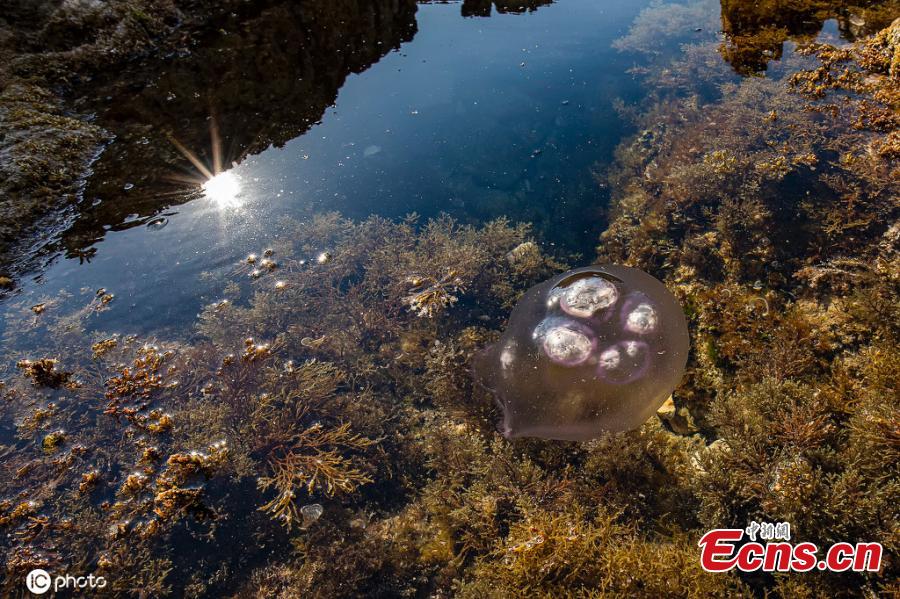 The photo taken on April 5, 2020 shows a jellyfish floating in sea water in Pula, Croatia. (Photo/ ICphoto)