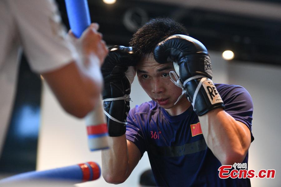 Chinese boxer Xu Can trains in Kunming, Southwest China’s Yunnan province, April 13, 2020. China's World Boxing Association champion Xu Can is ready to step up in class as he targets a prestigious unification bout in the featherweight division. Having successfully defended his title twice, Xu is preparing to next face either International Boxing Federation champ Josh Warrington or World Boxing Organization title holder Shakur Stevenson. Due to the global coronavirus pandemic, Xu’s fight is unlikely to be staged until the end of May or early June.(Photo: China News Service/ Liu Ranyang)