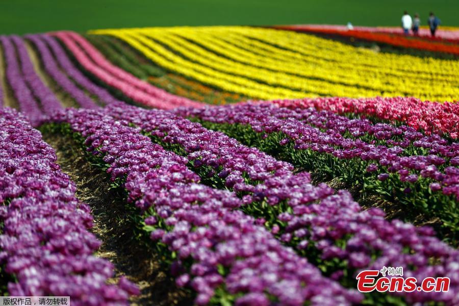 People walk on a field with blooming tulips during the spread of the coronavirus disease (COVID-19) in Grevenbroich, Germany, April 16, 2020. (Photo/Agencies)