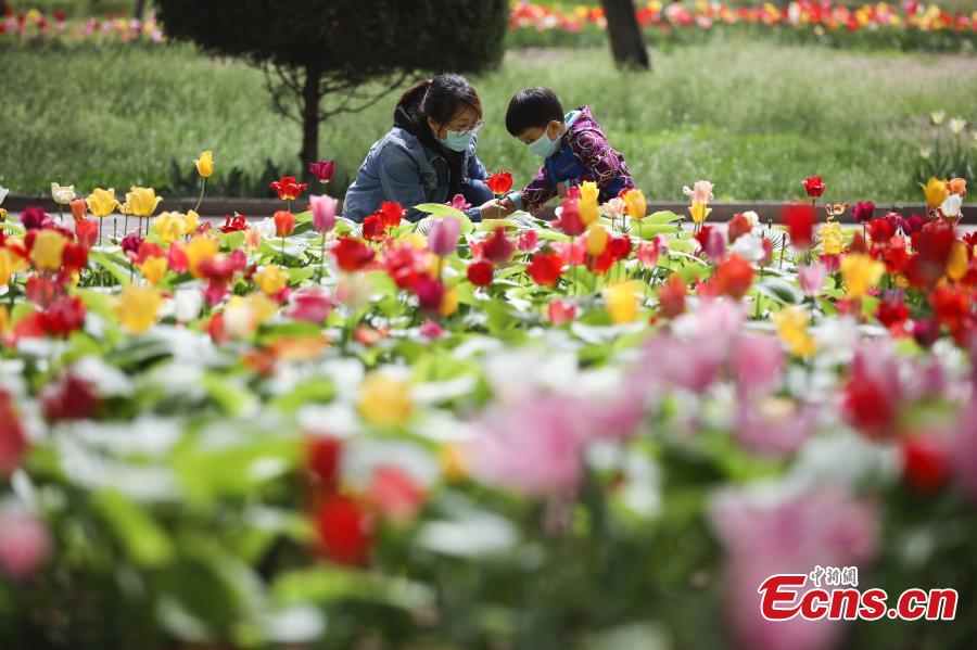 A field of blooming tulips is seen at the Beijing World Park in Beijing, April 16, 2020. (Photo: China News Service/Zhao Juan)