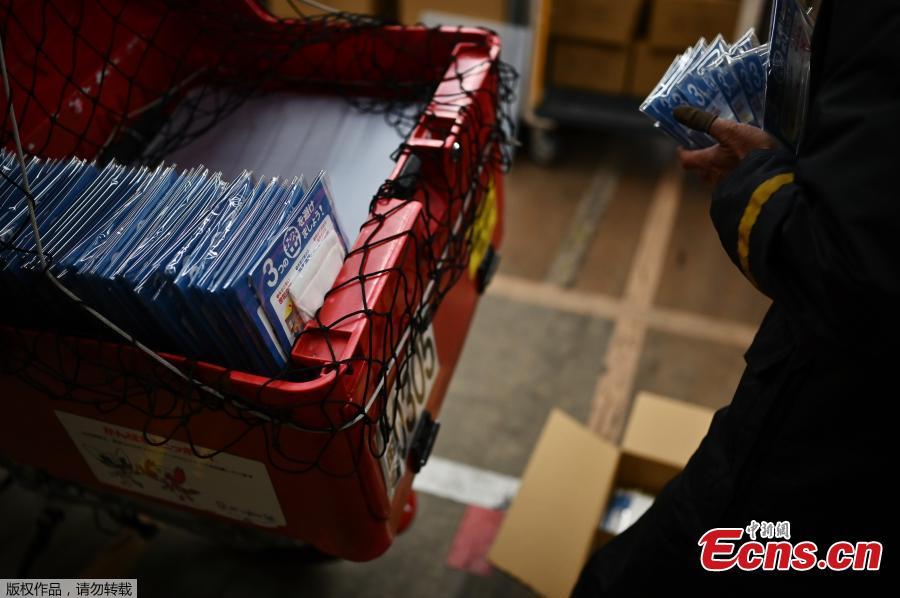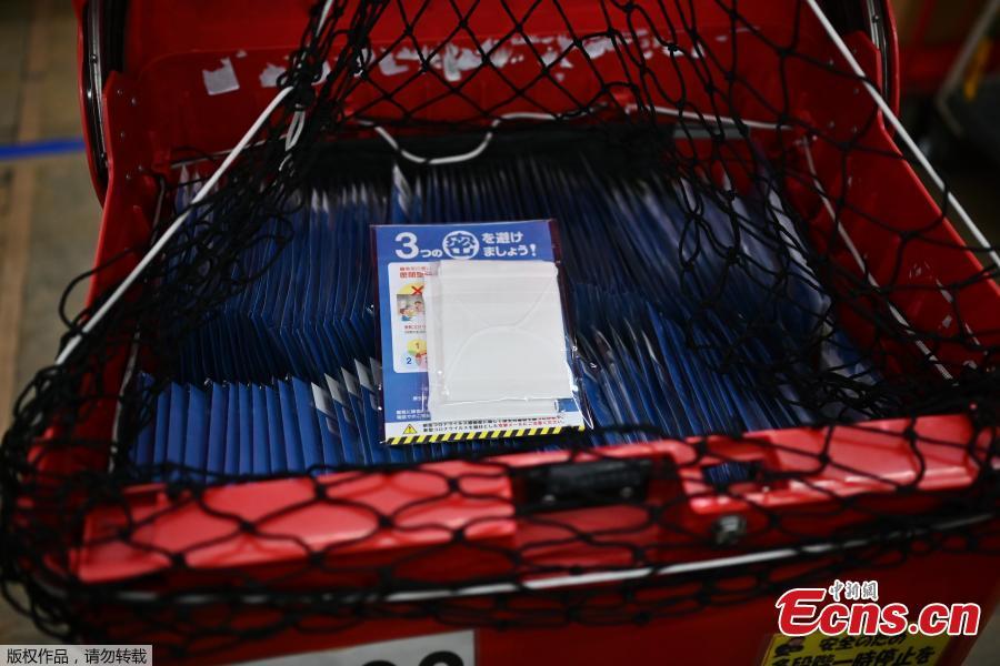 A Japan Post distributes face masks, known as "Abenomasks" (Abe's masks), which are distributed among residents to help against the spread of the COVID-19 coronavirus, in Tokyo on April 17, 2020. (Photo/Agencies)