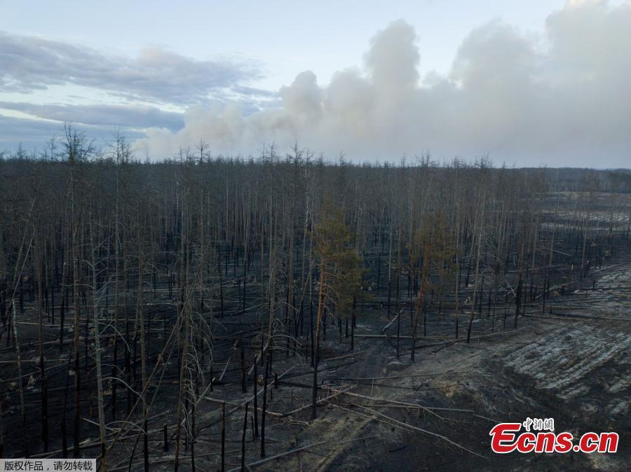 An aerial view shows burnt trees and plants, as an operation to extinguish wildfires around the defunct Chernobyl nuclear plant continues, in Zhytomyr Region, Ukraine April 18, 2020. (Photo/Agencies)