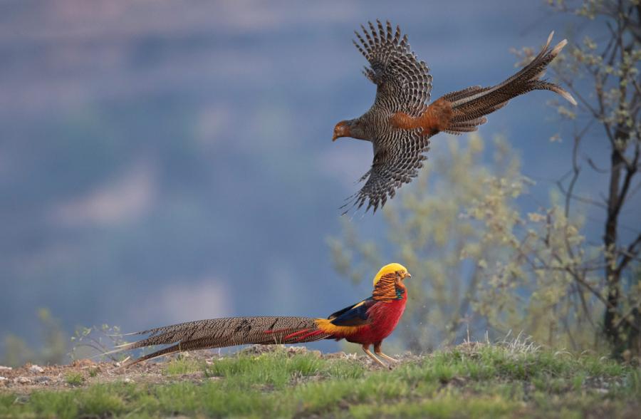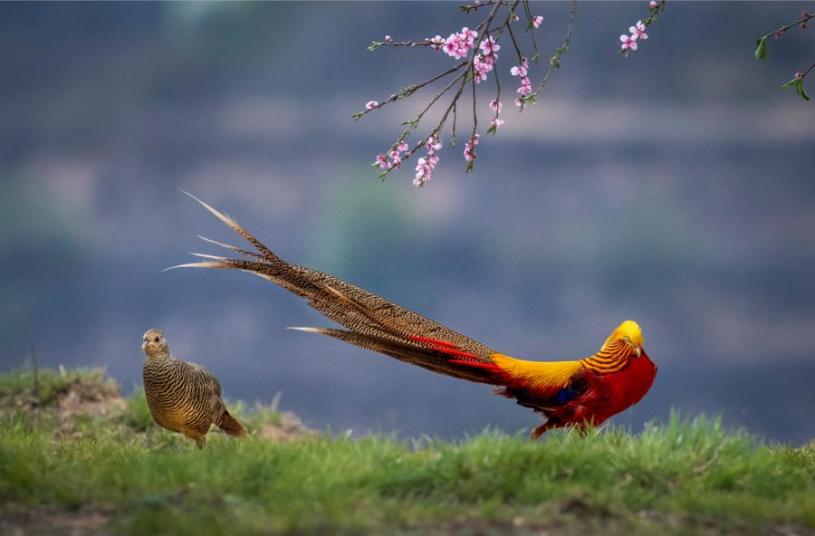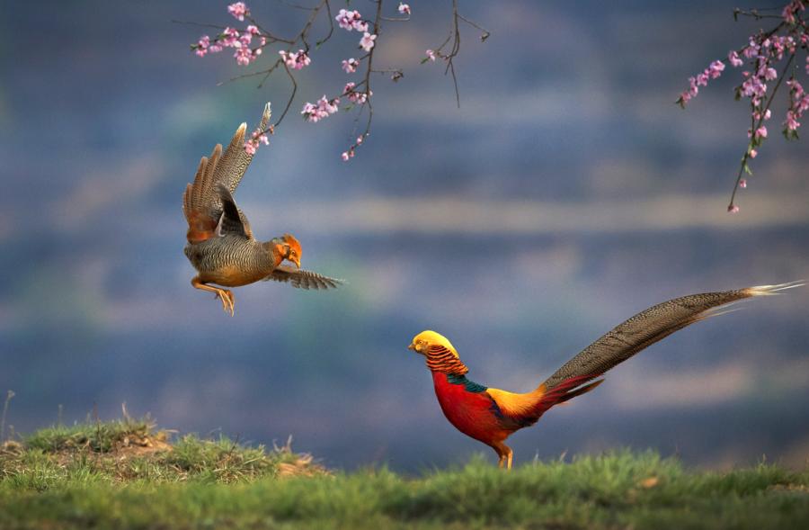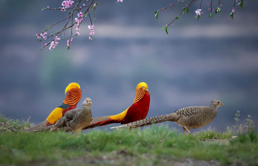 In a sign of spring, a group of golden pheasants were observed seeking mates recently in Yicheng county of Linfen, Shanxi Province. The birds seem to enjoy the spring scenery and have become part of the natural landscape. (Photo/chinadaily.com.cn)