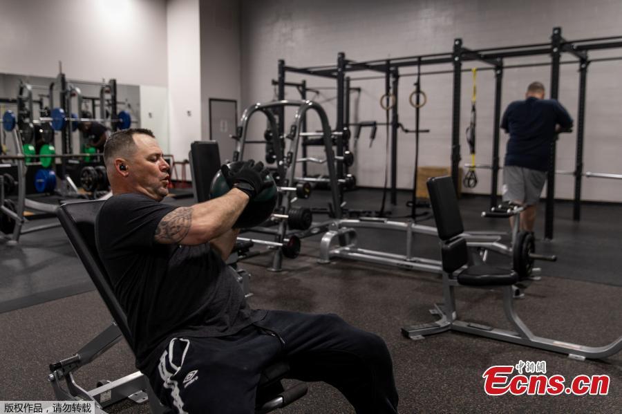 A man exercises at Gold's Gym, one of the businesses that reopened after a shutdown to prevent the spread of the coronavirus disease (COVID-19) in Augusta, Georgia, U.S., April 26, 2020. (Photo/Agencies)