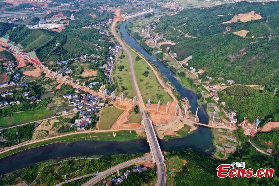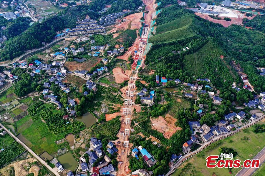 Aerial photo taken on April 29, 2020 shows the construction site of the Pinglian hightway in China's Jiangxi Province. The Pinglian hightway is 75,294 meters long and expected to open to traffic in 2021. (Photo: China News Service/Liu Zhankun)