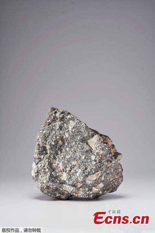 Photo shows one of the world's largest lunar meteorites, which will go on private sale at Christie's, April 30, 2020, valued at 2 million pounds ($2.49 million). (Photo/Agencies)