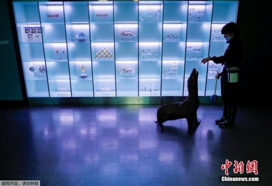 A female seal strolls as a part of it's practice for it's show, at an empty visitors' area at the Aqua Park Shinagawa which is closed to the public amid the coronavirus disease (COVID-19) outbreak during a state of emergency to fight the disease, in Tokyo, Japan, April 30, 2020. (Photo/Agencies)