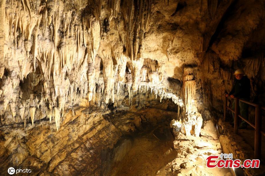 The photo shows structures inside a limestone cave in Rakovica, Croatia. The Caves of Barac are located near the village of Nova Krslja in the municipality of Rakovica, Croatia. In 1892 the caves were opened to visitors but subsequently abandoned and forgotten following World War II. In July 2004 the Upper Caves of Barac were reopened to visitors. (Photo/IC)