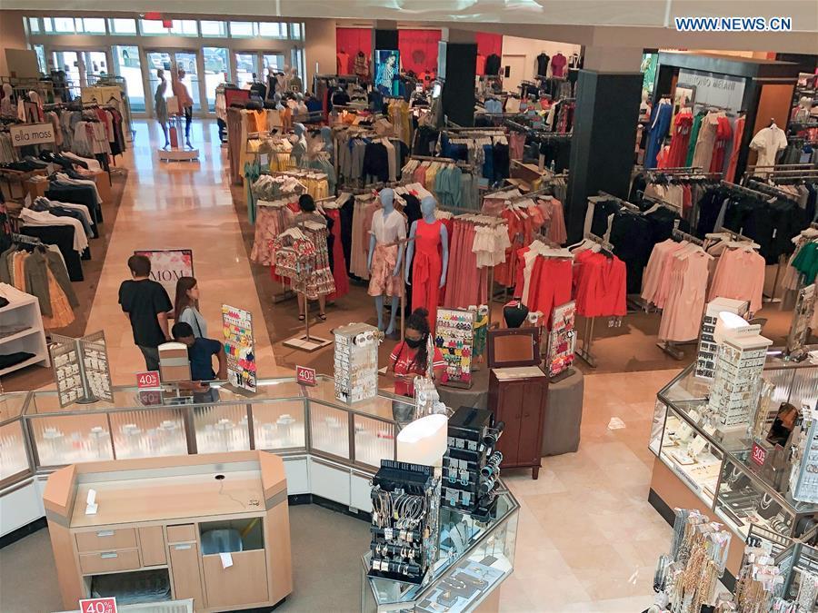 Customers shop at a shopping mall in Frisco, on the outskirts of Dallas, Texas, the United States, May 5, 2020. After closed for several weeks due to the outbreak of COVID-19 pandemic, the shopping mall reopened with shortened business hours on Tuesday. (Photo by Dan Tian/Xinhua)