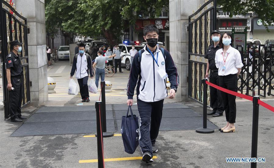 Senior students walk into Hubei Wuchang Experimental High School in Wuhan, central China's Hubei Province, May 6, 2020. Senior students in 121 high and vocational schools returned to campus on Wednesday in Wuhan City. These schools have carried out cleaning and preventive disinfection before opening. Health tests are required for all faculty and staff of Grade Three classes in these schools and for students prior to their return. (Xinhua/Xiong Qi)