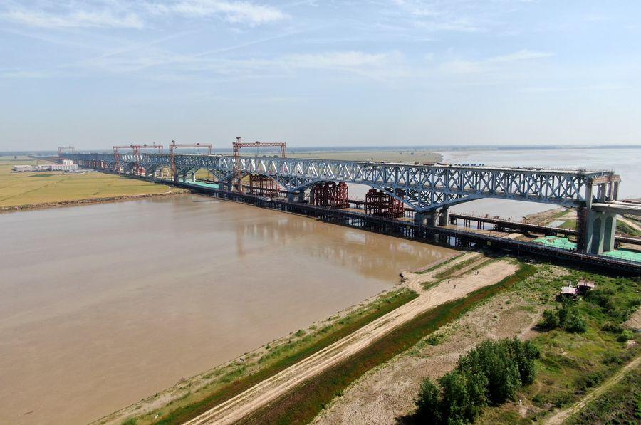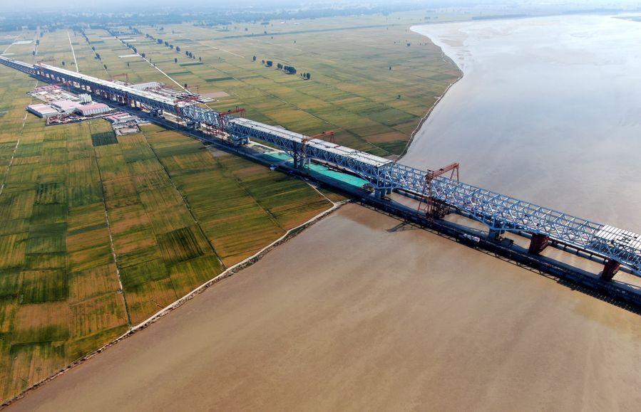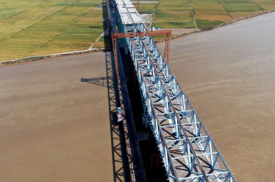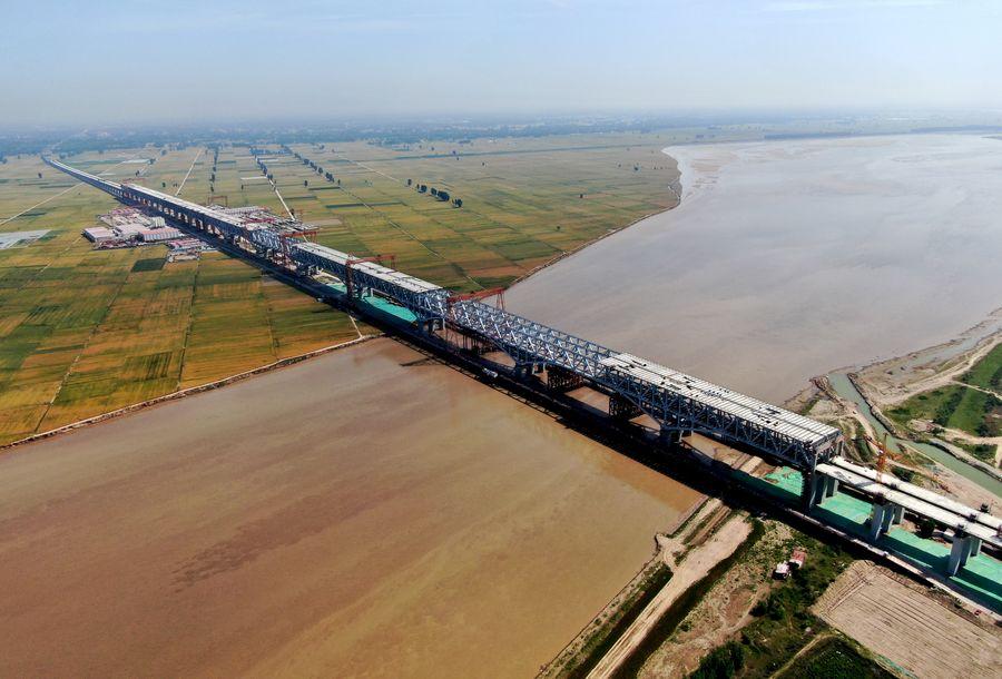 The bridge is a part of the railway line from Zhengzhou to Jinan, east China's Shandong Province.