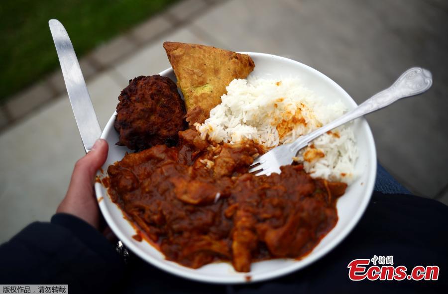 Photographer Hannah McKay displays a plate of chicken curry for a photo, as she eats dinner in the back garden of her parents; home, during the coronavirus disease (COVID-19) outbreak, in Coventry, Britain, May 13, 2020. Hannah McKay had the opportunity to travel north to cover medical workers in the cities of Blackburn and Burnley and divided the six-hour journey into two parts, sleeping in a tent in her parents' garden in Coventry before setting off the next morning. (Photo/Agencies)