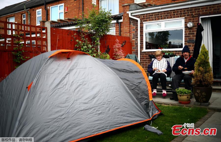 Chris and Jim McKay, the parents of photographer Hannah McKay, eat an evening meal together while social distancing away from their daughter, in the back garden of their home, during the coronavirus disease (COVID-19) outbreak, in Coventry, Britain, May 13, 2020. Hannah McKay had the opportunity to travel north to cover medical workers in the cities of Blackburn and Burnley and divided the six-hour journey into two parts, sleeping in a tent in her parents' garden in Coventry before setting off the next morning.(Photo/Agencies)