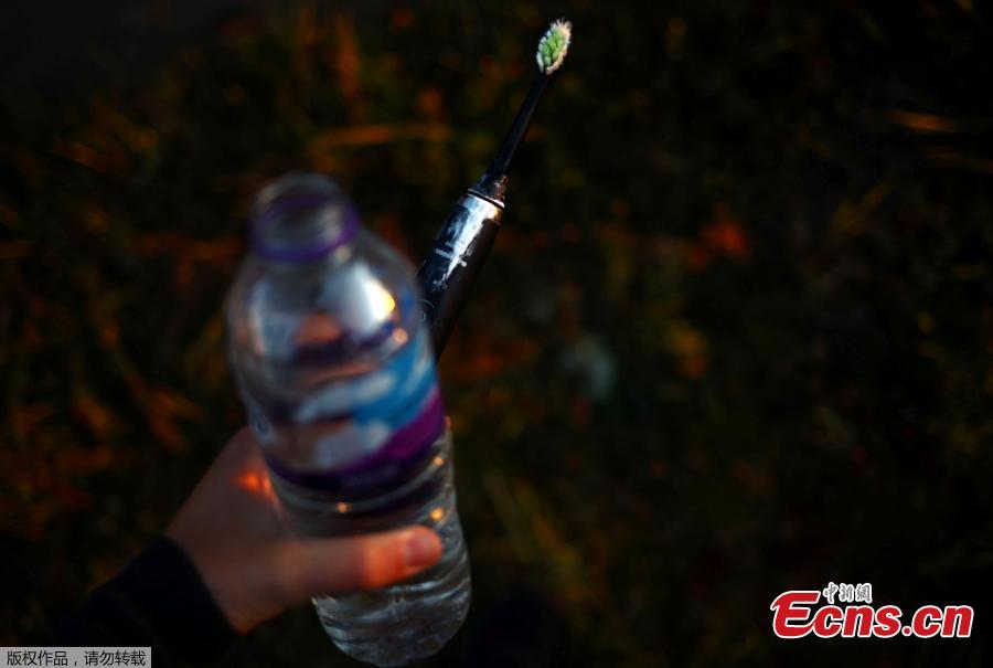 Reuters photographer Hannah McKay prepares to brush her teeth in an alleyway, after she spent the night sleeping in a tent in the back garden of her parent's home, during the coronavirus disease (COVID-19) outbreak, in Coventry, Britain, May 14, 2020. Hannah McKay had the opportunity to travel north to cover medical workers in the cities of Blackburn and Burnley and divided the six-hour journey into two parts, sleeping in a tent in her parents' garden in Coventry before setting off the next morning.(Photo/Agencies)