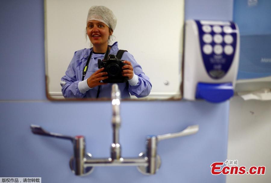 Reuters Photographer Hannah McKay, takes a picture of herself wearing PPE (personal protective equipment) before entering the laundry and linen room at The Royal Blackburn Teaching Hospital, during the coronavirus disease (COVID-19) outbreak, in Blackburn, East Lancashire, Britain, May 14, 2020. McKay had the opportunity to travel north to cover medical workers in the cities of Blackburn and Burnley. Much of the time was spent changing in and out of protective clothing, under the close surveillance of hospital staff. "I must have put on 20 masks throughout the day," she said. (Photo/Agencies)