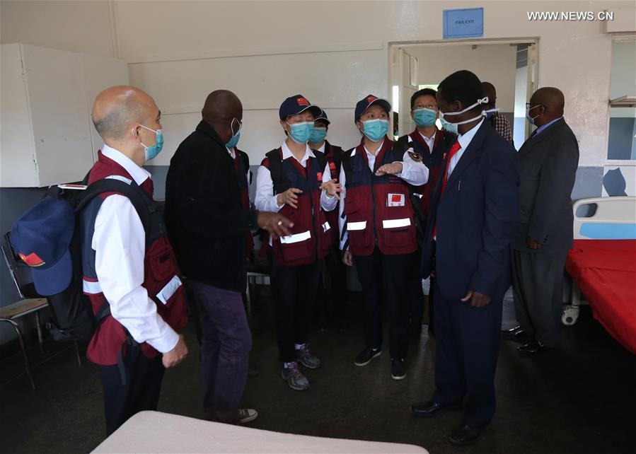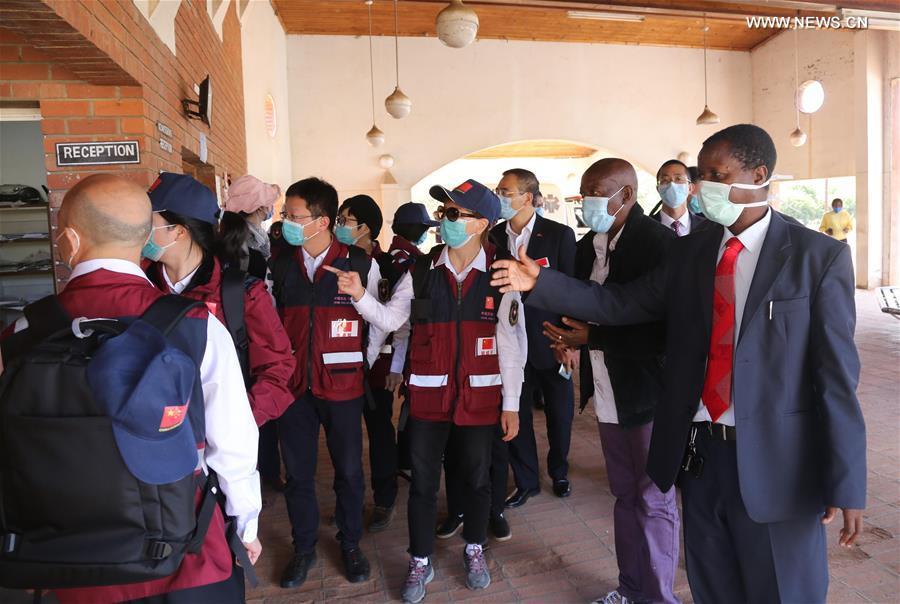 Members of a Chinese medical team visit Mvurwi Hospital in Mvurwi, Zimbabwe, May 19, 2020. A team of Chinese medical experts on Tuesday visited Mvurwi Hospital to exchange notes with their Zimbabwean counterparts on how best to fight the COVID-19 pandemic. (Xinhua/Zhang Yuliang)
